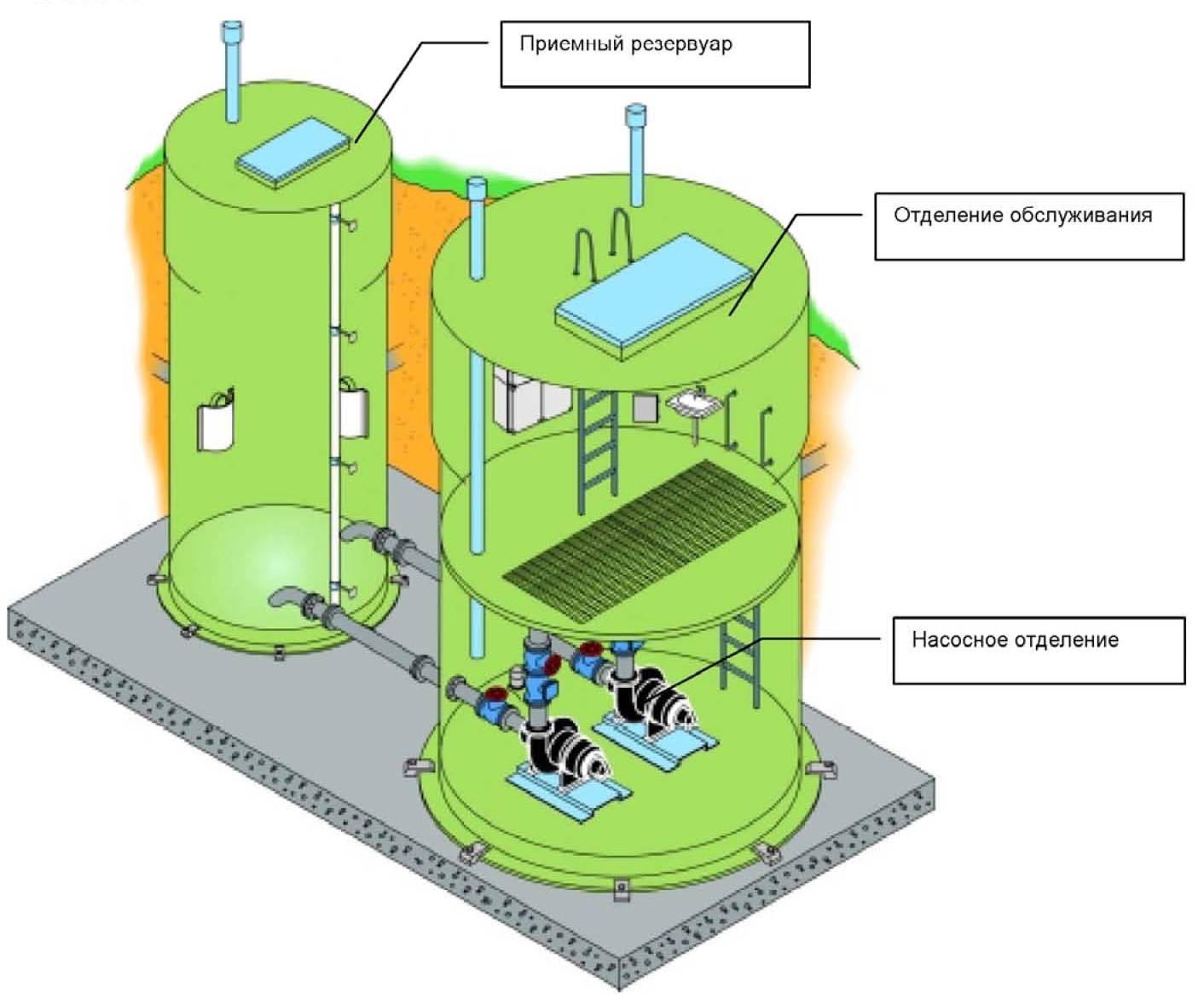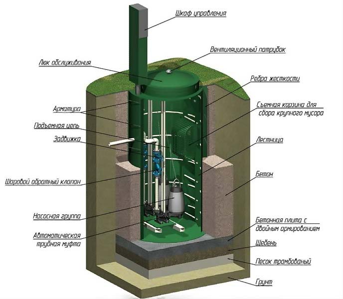 Dans le cadre de la station de pompage des eaux usées à grande capacité, il existe un système de filtration, qui est représenté par un réservoir de prétraitement. Il accumule des fractions lourdes, ainsi que des objets de grande taille. Ils sont là avant d'entrer dans la chambre de transfert. Dans de telles conceptions, une trappe est généralement prévue à travers laquelle des personnes, à l'aide d'une pelle, assurent un nettoyage efficace du récepteur. Pour la raison qu'en la station de pompage peut ne pas être seulement les ordures ménagères, mais aussi les eaux usées, pour le bon fonctionnement de l'équipement, il est nécessaire de nettoyer le récepteur une fois par mois.