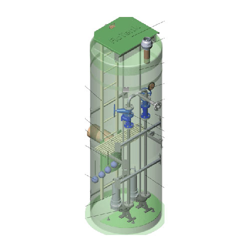 Selon leur emplacement par rapport à la surface terrestre, les SPS peuvent être enterrés, partiellement enterrés et avoir un emplacement au sol. Les stations au sol sont représentées par des mini-ensembles situés dans les cuisines, les salles de bain et les toilettes.Les enterrés sont des modèles traditionnels avec un réservoir de stockage creusé dans le sol, et pour les réservoirs partiellement enterrés, un réservoir équipé de capteurs, d'une pompe et de vannes est situé dans le sol le long du col. Système de surveillance et de contrôle automatique tout en étant ramené à la surface.