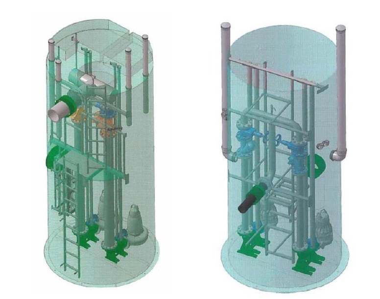 Trois types de pompes sont installés sur la station de pompage des eaux usées.