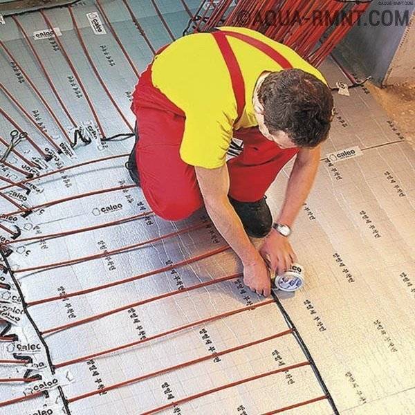 Les joints sont isolés avec du ruban bitumineux. L'isolation couvre les endroits des coupures dans le domaine des pneus métalliques. Pour que les joints ne ressortent pas à la surface et ne subissent pas une charge importante du revêtement de sol, un évidement est fait pour eux dans le substrat ou dans l'écran réfléchissant.