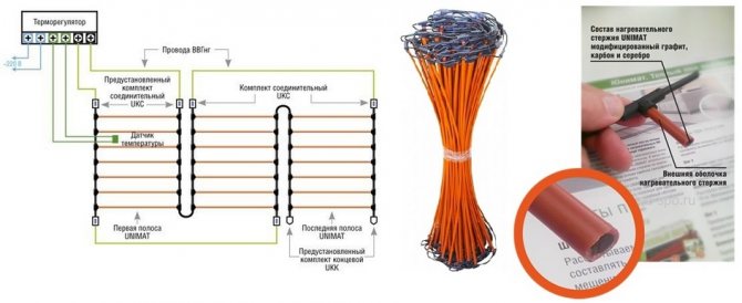 - Tringle à plancher chauffant Unimat Boost. Ce type se caractérise par un pas plus court entre les composants chauffants. La distance entre les tiges est de 9 cm La puissance de chauffage nominale est de 160 watts. Convient pour chauffer des pièces avec de grandes pertes de chaleur. Il est utilisé dans les sous-sols non chauffés, les balcons et les dépendances comme une loggia.