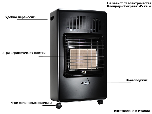 • le mécanisme du chauffage au gaz est extrêmement simple - il n'y a pas une seule unité complexe ici, et donc il n'y a pratiquement rien à s'user et à se casser, et c'est un gros plus pour la durabilité du produit;
