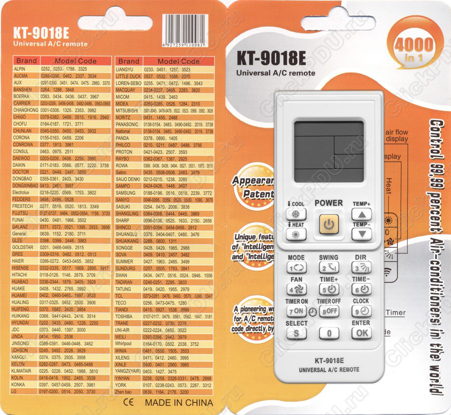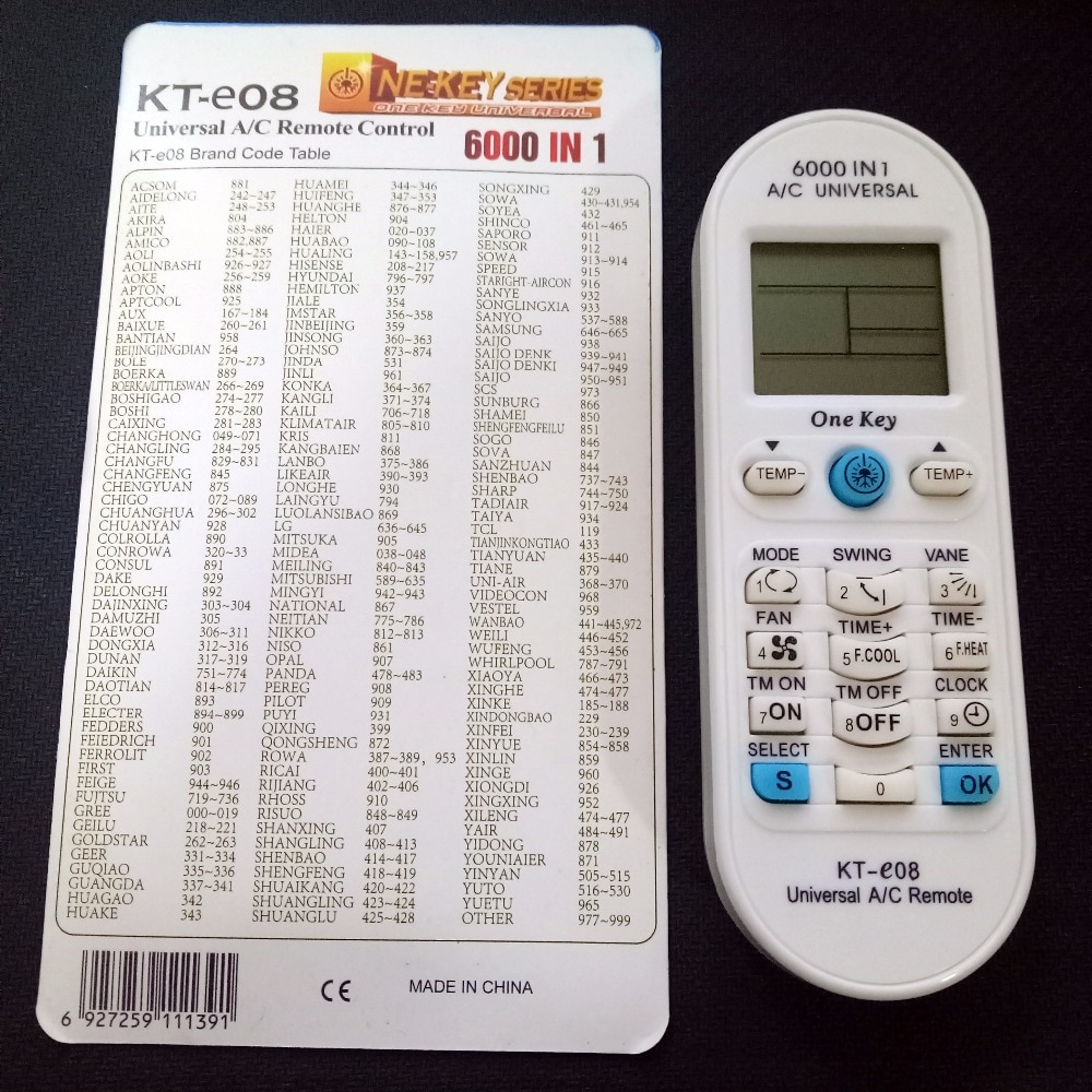 Codes de contrôle du climatiseur: instructions pour configurer une télécommande universellePour chaque fabricant de climatiseur, il existe environ 6 codes différents que vous devez saisir manuellement pour configurer l'appareil universel