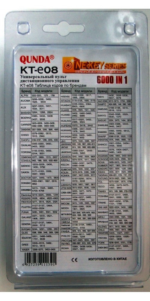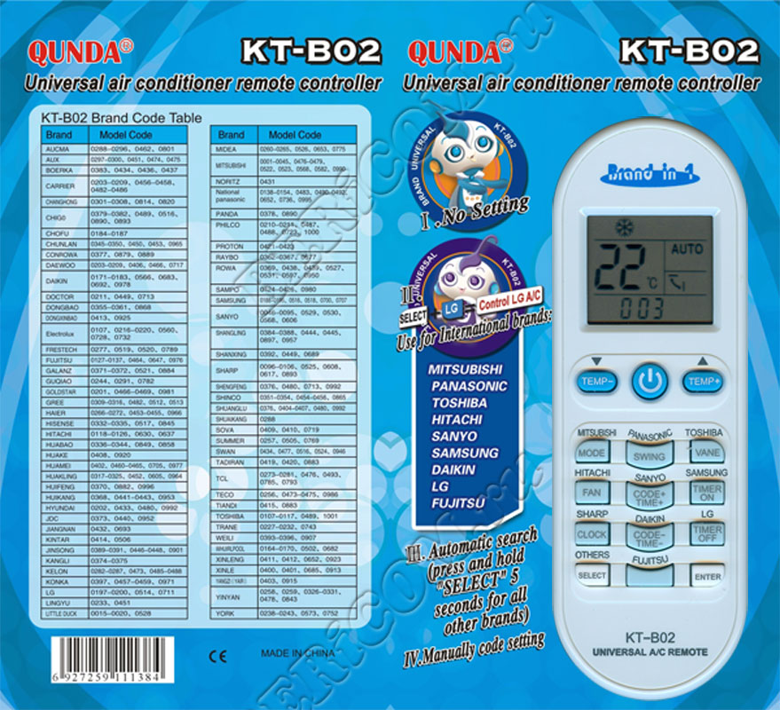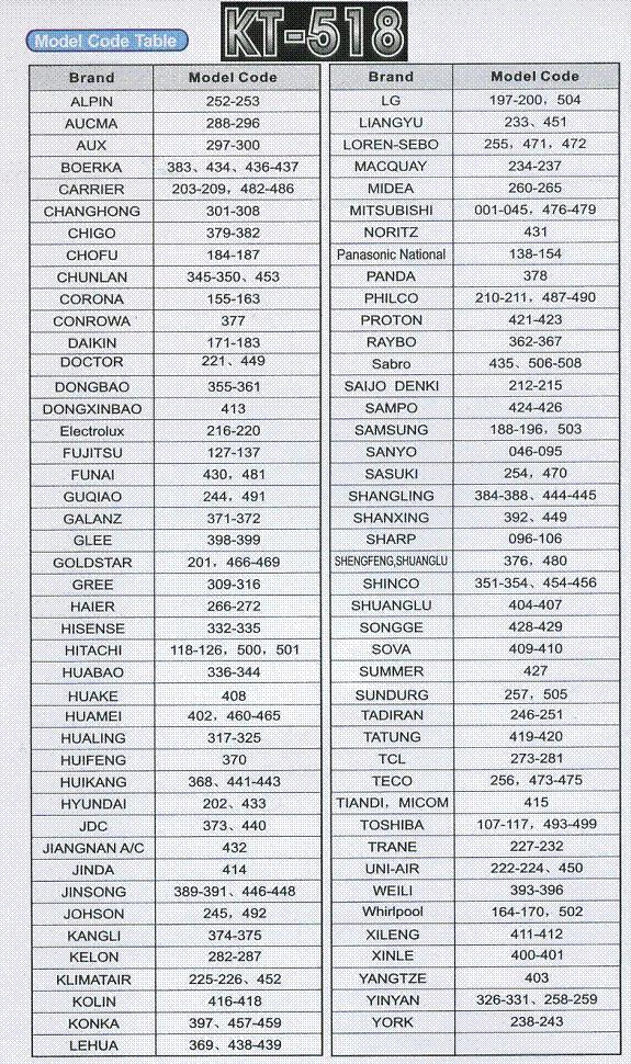 Après avoir étudié les instructions, vous devrez programmer vous-même le climatiseur en sélectionnant manuellement les codes prescrits dans la colonne du fabricant de votre équipement climatique.