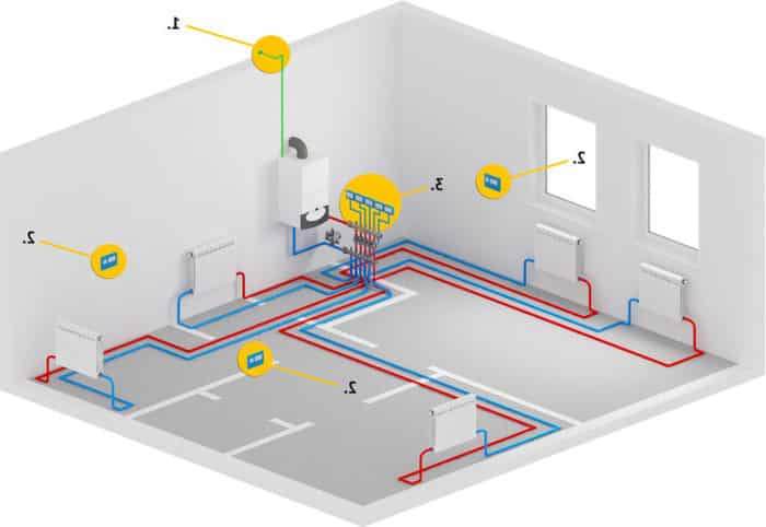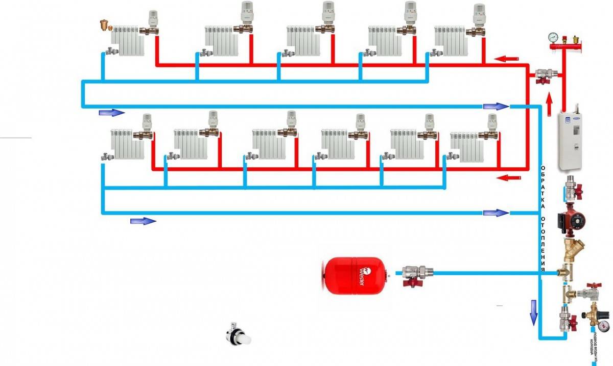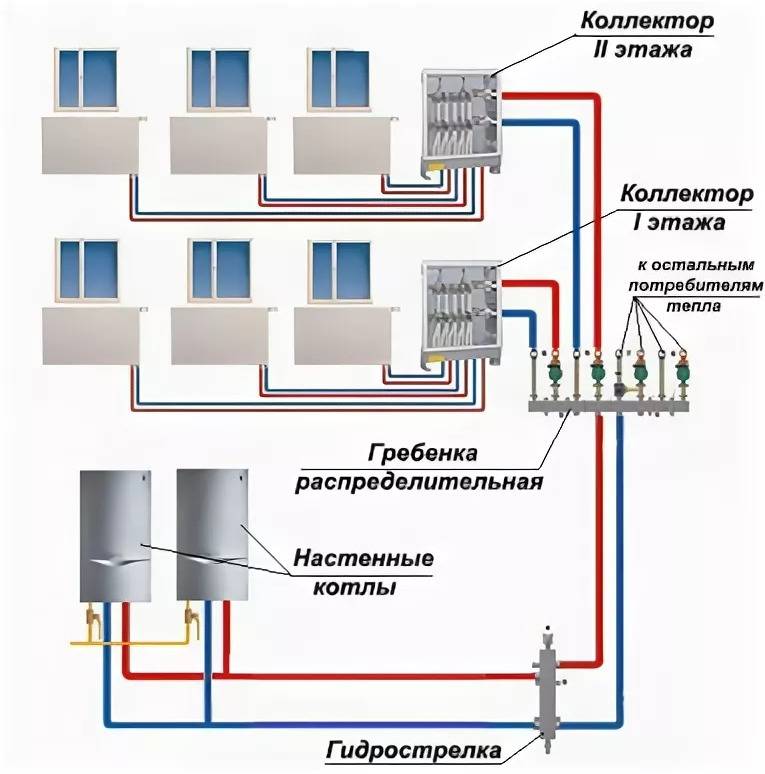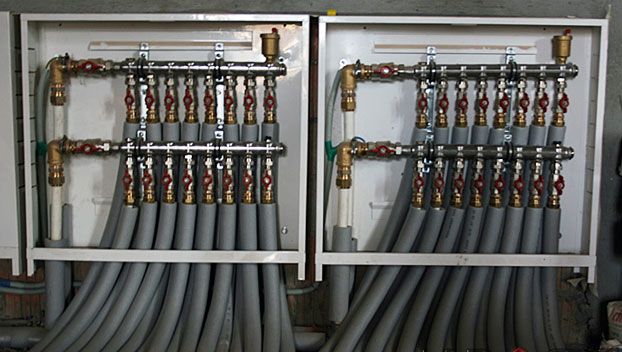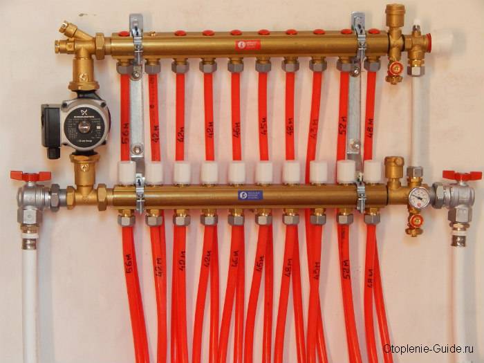 Le circuit collecteur est reconnu comme le plus efficace, ce qui permet d'amener un tuyau séparé à chaque radiateur. La chaleur est répartie uniformément. Il y a un inconvénient - le coût élevé de l'équipement, à mesure que la quantité de consommables augmente.