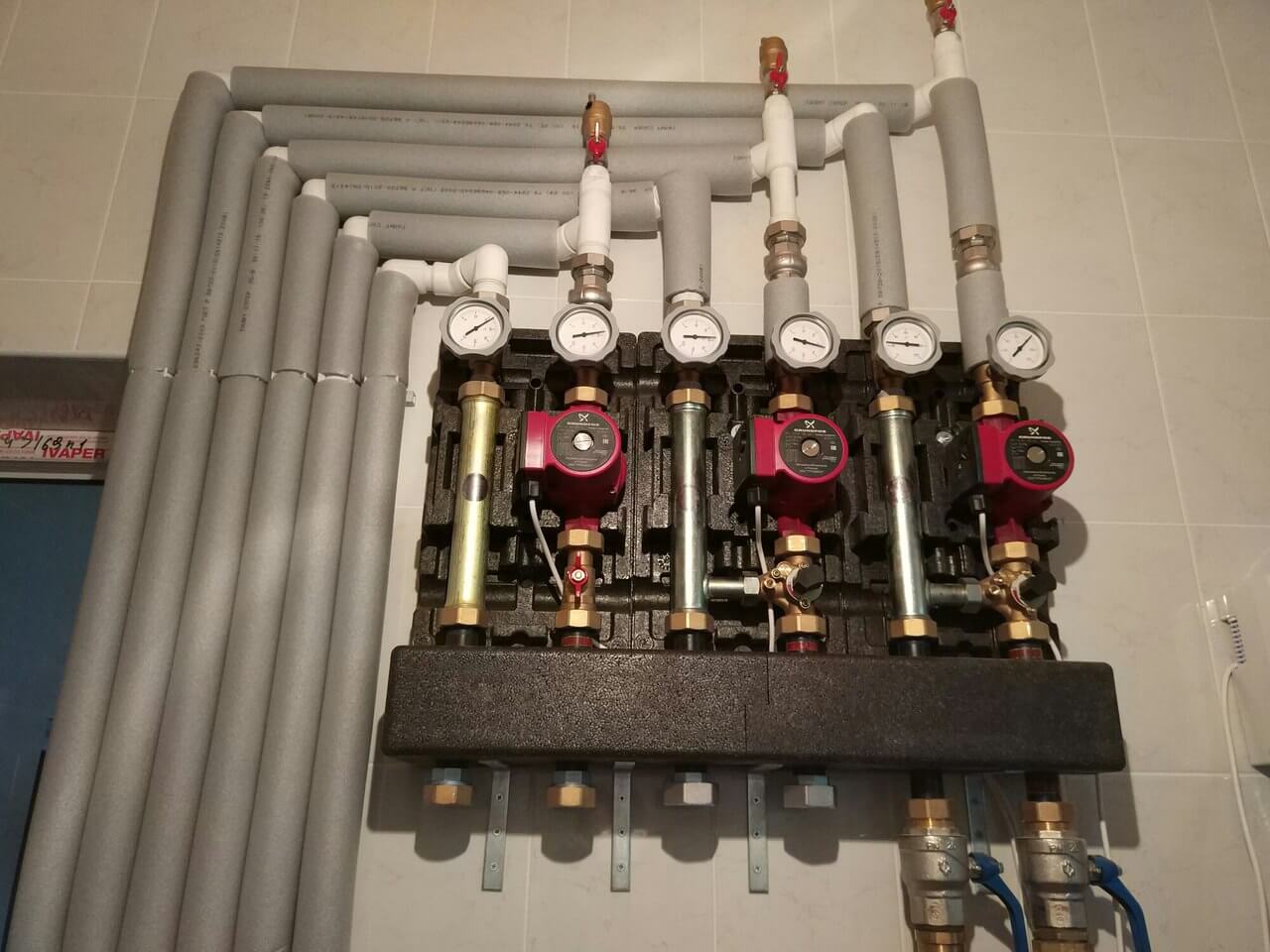 - Avec des exigences accrues en matière de design d'intérieur, prenez en charge le câblage du collecteur. Afin de ne pas se tromper sur les dimensions des tuyaux, tirez le diamètre de 32 mm vers le peigne, et effectuez les raccordements aux piles Ø16 x 2 mm (extérieur).