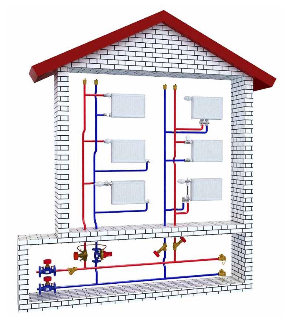 Pour s'éloigner de la répartition inégale du caloporteur, des schémas à deux tuyaux sont utilisés.