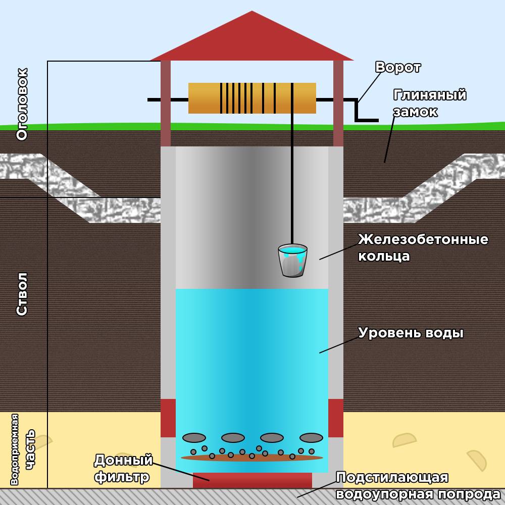 Après cela, un filtre doit être équipé au fond du puits pour la purification naturelle de l'eau entrant dans la mine. Sans cela, il sera trouble, avec des impuretés de sable et d'argile en suspension.