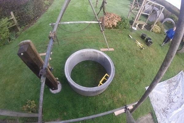 Si le sol ne s'effrite pas sur toute la longueur, après avoir atteint l'aquifère, ils s'arrêtent. À l'aide d'une grue ou d'un manipulateur, des anneaux sont placés dans l'arbre. Ensuite, ils approfondissent un autre couple d'anneaux selon la première méthode, augmentant le débit.