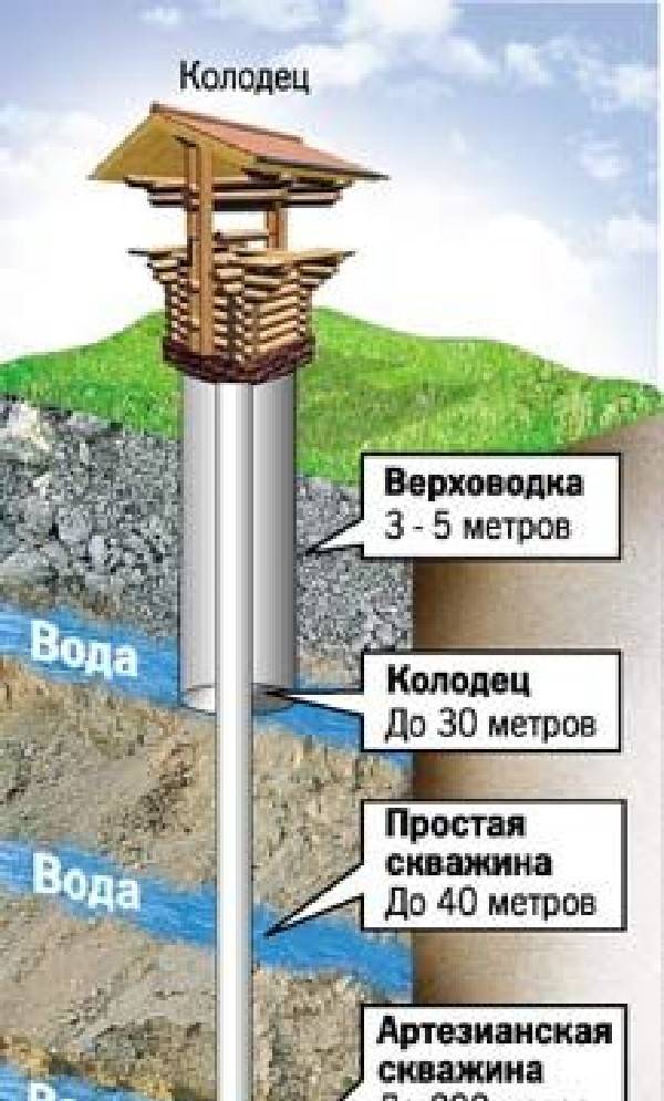 Un puits est un puits qui atteint l'horizon hydrique avec de l'eau propre à la consommation. Selon la profondeur à laquelle se trouve la couche d'eau, les experts divisent ces ouvrages hydrauliques en deux types :
