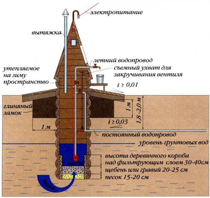 - Mien. C'est alors qu'il est nécessaire de creuser le sol jusqu'à la couche d'eau, en construisant une mine à section ronde ou carrée. La profondeur de la structure peut atteindre jusqu'à 10 m.