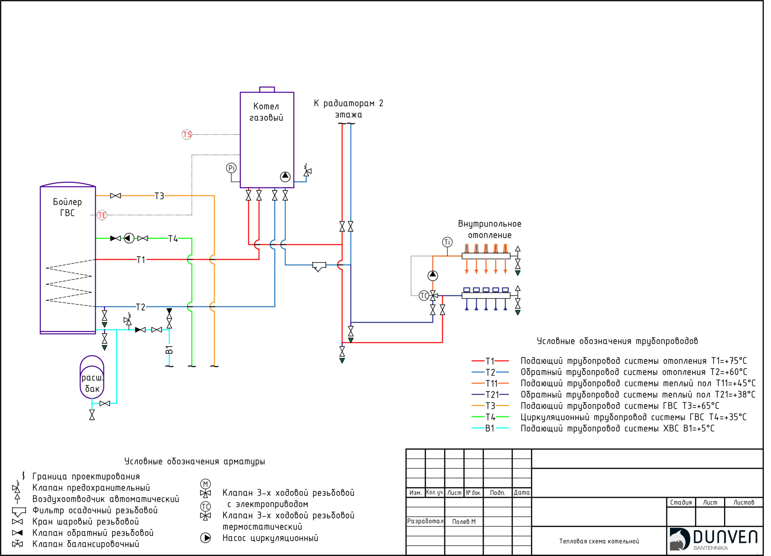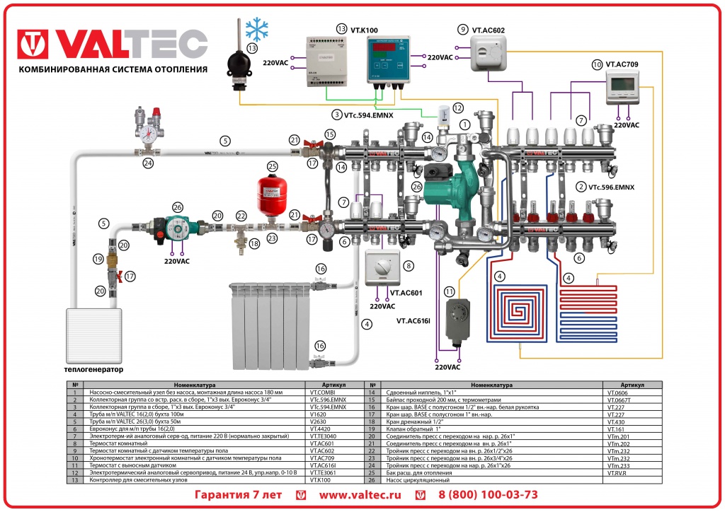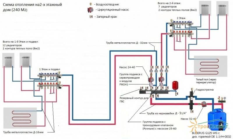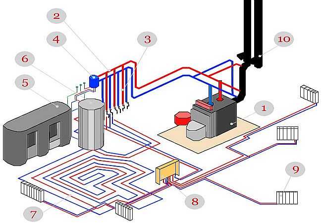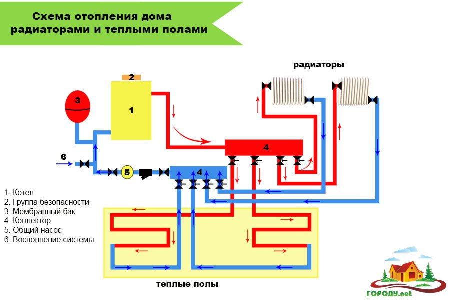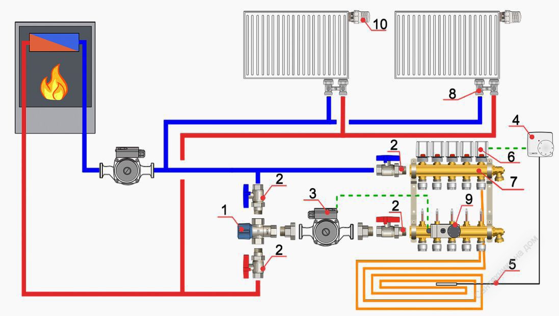 Mais cela est résolu en connectant différents circuits en un seul. Pour cela, deux circuits, il s'agit d'un radiateur et d'un plancher, sont amenés sur un même circuit colonne montante ou chaudière. Et puis le problème est résolu.