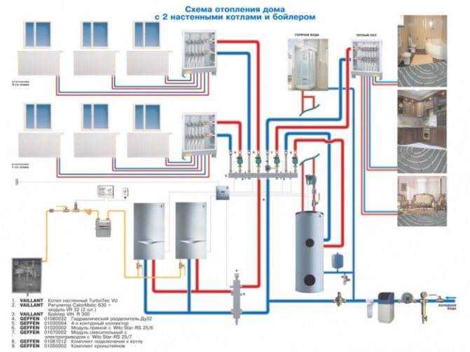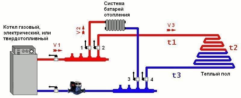 À son tour, le câblage horizontal du système de chauffage peut être combiné avec un collecteur. Cela est vrai pour les longs pipelines. Ainsi, il est possible d'obtenir une distribution uniforme de l'eau chaude dans toutes les pièces de la maison.