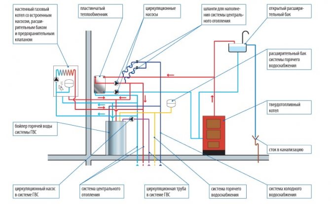 Le chauffage est directement installé dans un appartement ou une maison - une cheminée est organisée, des canalisations sont créées, des appareils de chauffage et un générateur de chaleur sont liés.