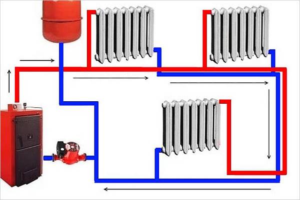 La première option nécessite la connexion d'une pompe de puissance suffisante, qui assurera le mouvement du liquide de refroidissement dans les utilités. Le second est obtenu en raison d'un changement de la densité et du degré de chauffage de l'eau dans différentes parties du système de chauffage, le liquide de refroidissement chauffé monte, évacuant l'eau plus froide.