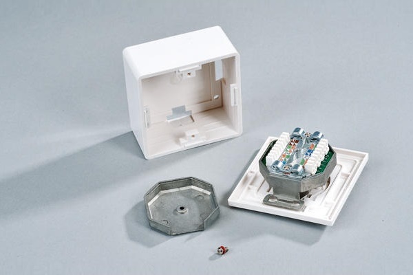 À l'aide d'une méthode de montage ouverte, le boîtier de l'appareil est fixé au mur, en dirigeant le connecteur de l'ordinateur vers le bas et l'entrée du câble vers le haut. Avec une méthode d'installation fermée, la douille est enterrée dans la douille préparée pour elle, en la fixant avec des entretoises.