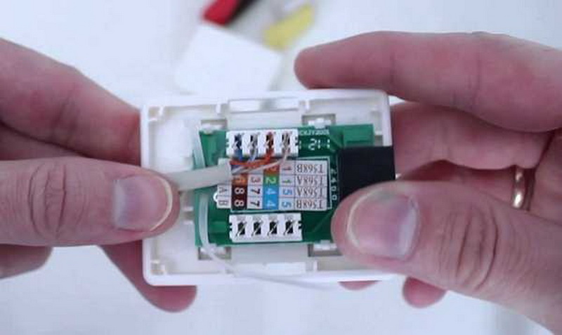 Au stade final, à l'aide d'un testeur, ils vérifient la bonne connexion. Si le testeur n'est pas à portée de main, vous pouvez simplement brancher l'extrémité du câble allant à l'ordinateur dans le "noyau" connecté, mais pas encore installé dans la prise.