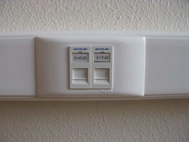 Aucun immeuble de bureaux moderne n'est complet sans accès à Internet ou à un réseau local. Ainsi, une prise Internet fait partie intégrante de ces locaux. Dans ce cas, il peut non seulement être monté au mur, mais également fixé au lieu de travail. La deuxième méthode est préférable, car les fils posés ouvertement échouent beaucoup plus rapidement et violent l'aspect esthétique de la pièce.