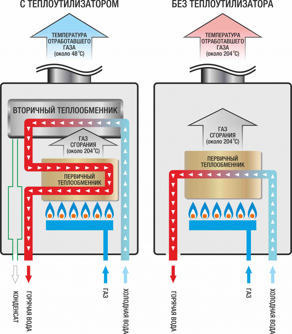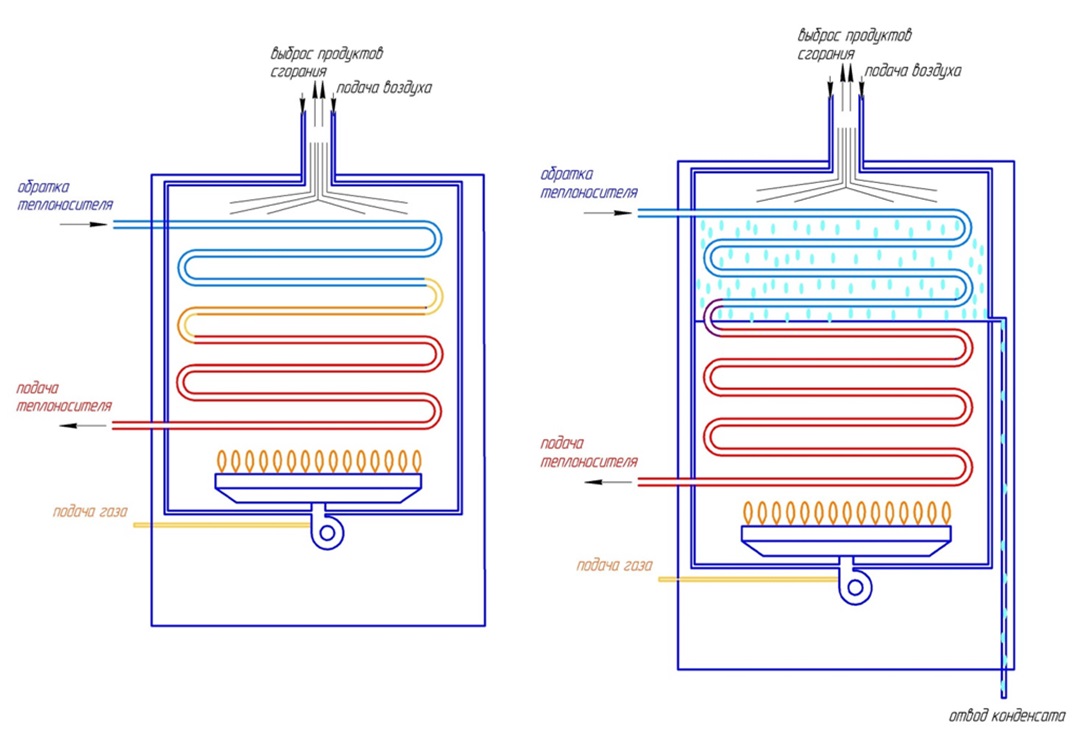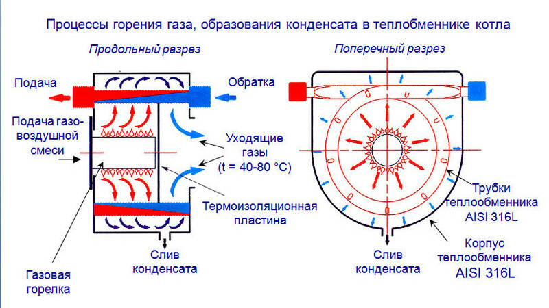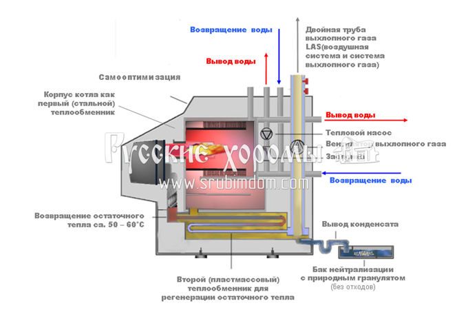 Et la vapeur d'eau dans un générateur de chaleur à convection (conventionnel) "vole dans le tuyau", emportant avec elle une partie de la chaleur (énergie générée) dans l'atmosphère. De plus, la valeur de cette énergie « perdue » peut atteindre jusqu'à 11 %.