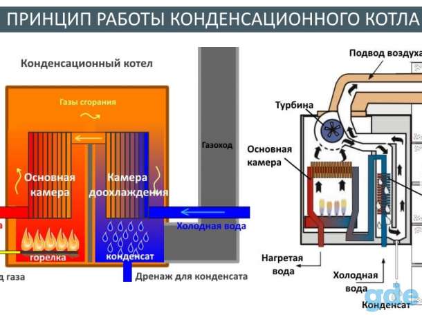 Quelle est sa différence fondamentale avec le générateur de chaleur gaz-combustible à convection traditionnel ? Après avoir élaboré le processus principal de combustion du carburant et de transfert d'une partie importante de la chaleur dégagée dans ce cas vers l'échangeur de chaleur, le condenseur refroidit les gaz de combustion à 50-60°C, c'est-à-dire au point où le processus de condensation de l'eau commence. Cela suffit déjà pour augmenter considérablement l'efficacité, dans ce cas, la quantité de chaleur transférée au liquide de refroidissement. Cependant, ce n'est pas tout.