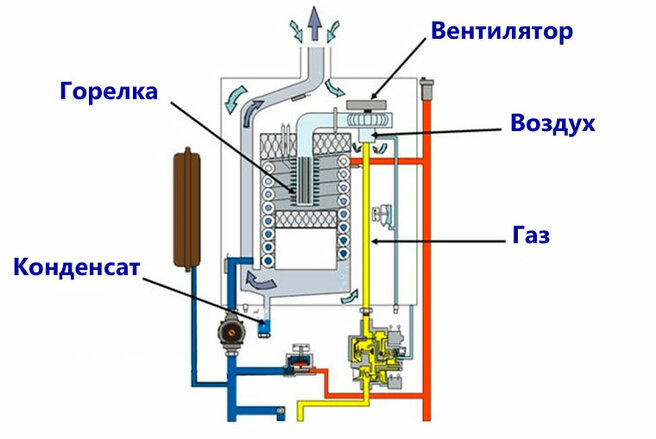 Le rendement d'une chaudière à gaz à convection est d'environ 90 %. Ce n'est pas si mal, du moins supérieur à celui des générateurs de chaleur à combustible liquide et solide. Cependant, les gens ont toujours cherché à rapprocher ce chiffre le plus possible des 100 % tant convoités. À cet égard, la question se pose : où vont les 10 % restants ? La réponse, hélas, est prosaïque : ils s'envolent dans la cheminée. En effet, les produits de la combustion des gaz sortant du système par la cheminée sont chauffés à très haute température (150-250°C), ce qui signifie que 10% de l'énergie que nous perdons est dépensée pour chauffer l'air extérieur de la maison.