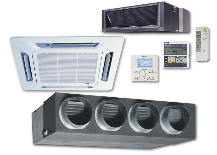 Mais la chaleur extraite de l'air doit être évacuée quelque part. Ce problème est résolu avec succès à l'aide d'un échangeur de chaleur connecté au condenseur de l'unité externe. Les climatiseurs gainables sont en demande dans les centres commerciaux et les magasins. Avec une installation correcte, un niveau minimum de bruit parasite est assuré. Une partie de la technologie des canaux est conçue pour utiliser de l'eau pour évacuer la chaleur. Ce sont des solutions plus puissantes et leur coût est assez élevé, ce qui limite leur application pratique.