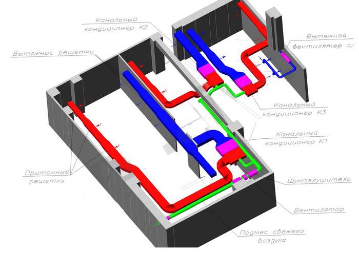 Le système de répartition des canaux utilise les schémas d'approvisionnement de la manière la plus compétente.Ce climatiseur prélève-t-il de l'air extérieur ? Une unité déportée est située à l'extérieur du circuit, les évaporateurs y sont reliés par des canalisations, montées en faux plafond ou faux mur. Une unité de préparation d'air extérieur est utilisée, qui est fournie au système à plusieurs endroits. Condition - une place derrière le mur ou sous le sol, suffisante pour accueillir l'équipement. Le système est programmable, la régulation est effectuée par une centrale électronique. L'installation de préparation de l'alimentation en air de la rue et le climatiseur gainable ont des panneaux de commande différents. L'apport d'air frais peut être de 30 %. À la suite du renouvellement, l'équilibre de la teneur en dioxyde de carbone et en oxygène change.