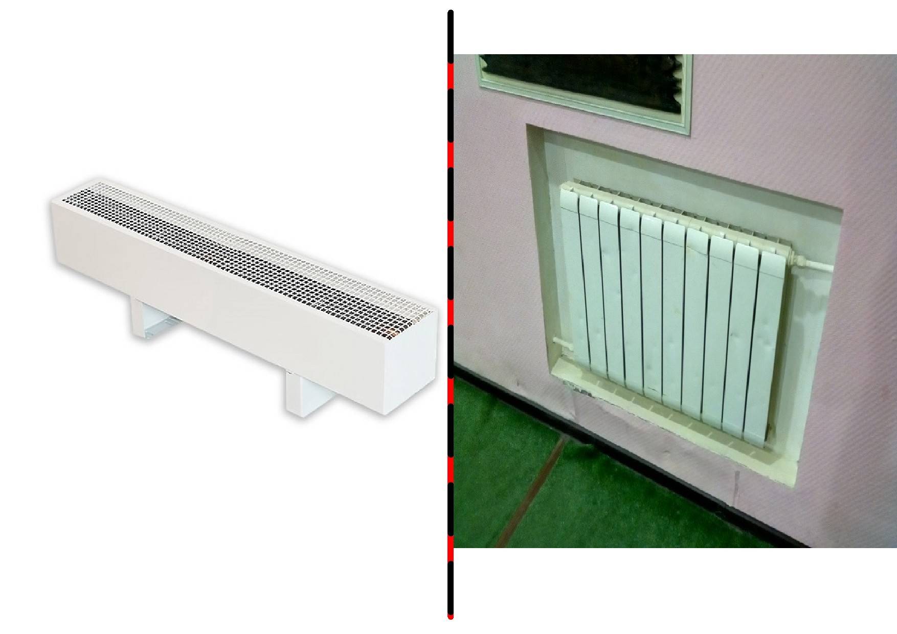 Les convecteurs, ainsi que les radiateurs, sont représentés par des modèles de sol et de mur. Dans le même temps, les dimensions du convecteur sont généralement légèrement plus petites.