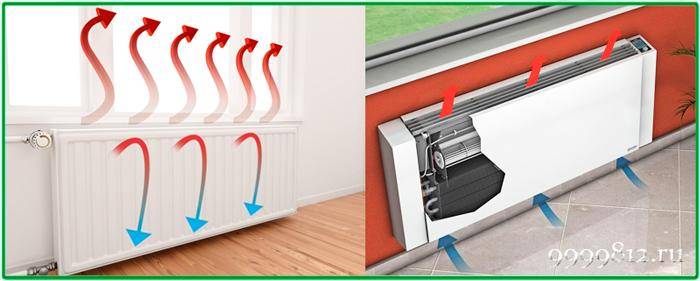 Lors du choix d'un convecteur, veuillez noter que la chaleur est répartie de manière inégale pendant la convection - la différence de température de l'air près du sol et sous le flux peut atteindre 10 ° C. De plus, les appareils de ce type ne conviennent pas aux pièces et pièces poussiéreuses.