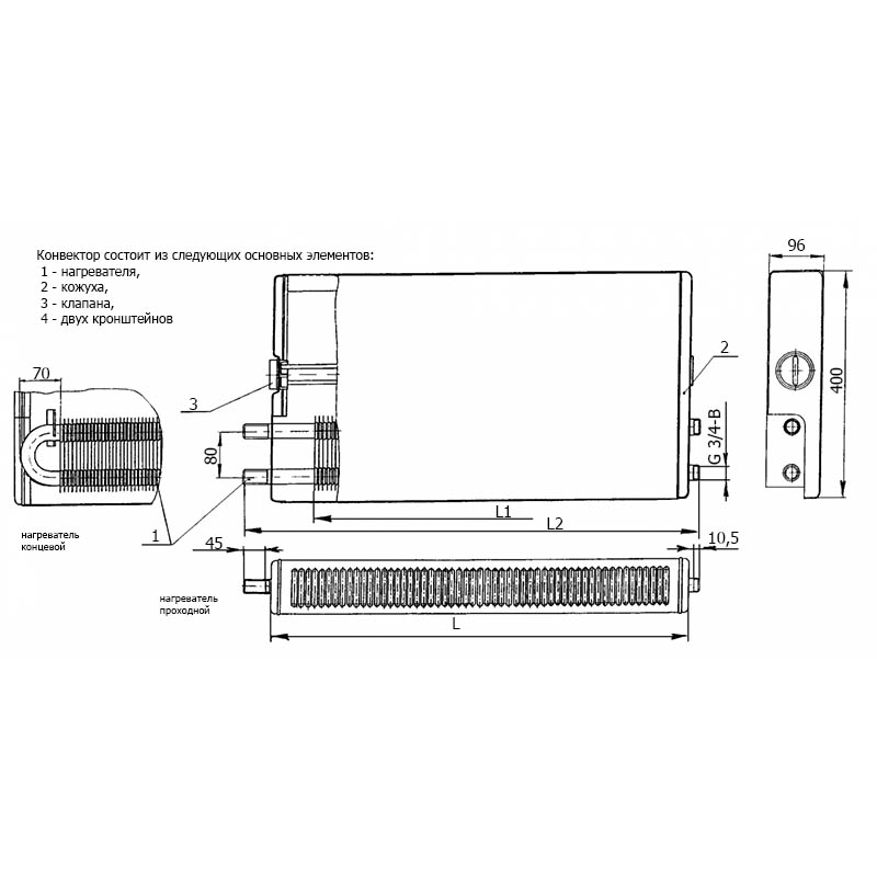 Le convecteur universel TZPO se compose des éléments suivants :