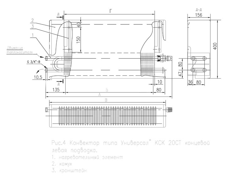 1.3 La connexion des convecteurs KSK-20 au système de chauffage est réalisée à l'aide d'un filetage G 3 /4-B et d'une soudure.