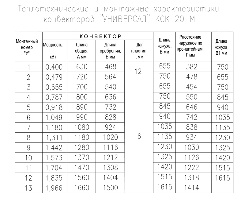 1.6 Symbole du convecteur : "Convecteur KSK 20 - 0,655 K (P) GOST 20849-94,