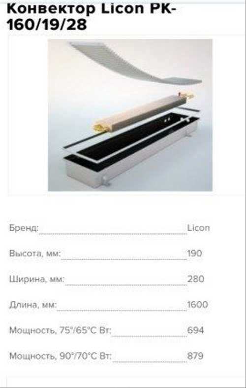 En plus des radiateurs de chauffage traditionnels Licon Clasic, l'entreprise produit des convecteurs Licon. Les appareils ont les caractéristiques suivantes :