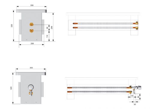 Convecteur au sol Elegant Mini 130x130x2000 avec 2 cuivres.