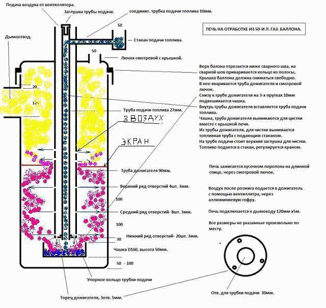 Le schéma de principe d'un poêle à deux chambres avec un tuyau perforé de raccordement vous permet de comprendre exactement le fonctionnement d'une unité simple dans l'exploitation minière