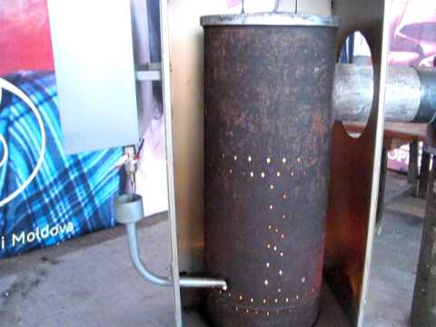 1. La conception la plus simple et la plus populaire de la combustion directe avec post-combustion des vapeurs d'huile dans un tuyau perforé de type ouvert (le soi-disant poêle miracle).