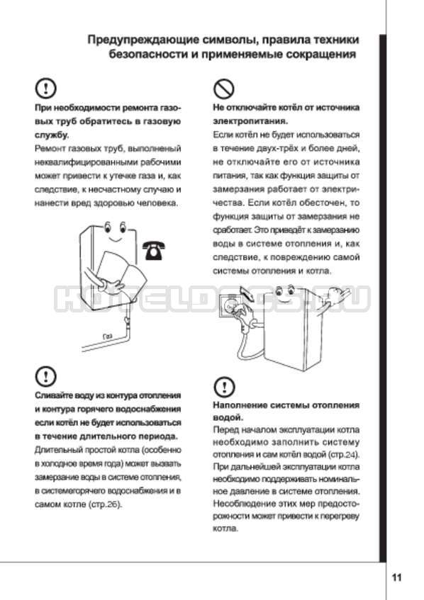 Les propriétaires de tout équipement de chauffage, bien sûr, sont vivement intéressés par comment le prolonger utilisation, comment éliminer divers problèmes et retarder les réparations majeures. Mais il est encore plus important de prendre soin de votre propre sécurité.Il est strictement inacceptable d'ouvrir l'appareil et de violer l'étanchéité de son boîtier, en particulier pendant le fonctionnement. À l'intérieur, il y a de nombreuses pièces chaudes, tranchantes et sous tension. S'il était nécessaire de démonter la chaudière, cette opération, ainsi que l'installation d'une nouvelle, doivent être effectuées uniquement par des spécialistes qualifiés.