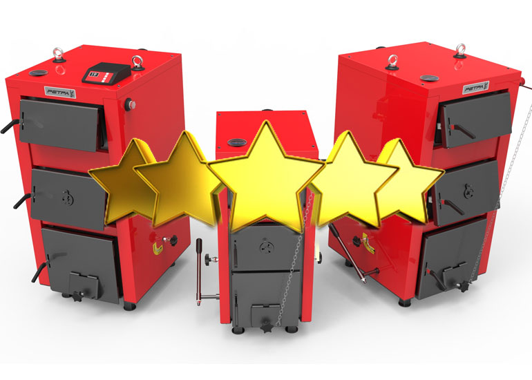 Unités à four unique en acier - le four est situé sur le dessus, ce qui garantit une combustion plus longue d'un signet (bois de chauffage pendant plus de 24 heures, charbon - jusqu'à 144 heures) et un chauffage uniforme du liquide de refroidissement.