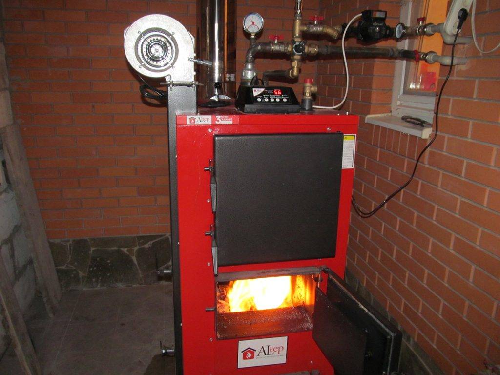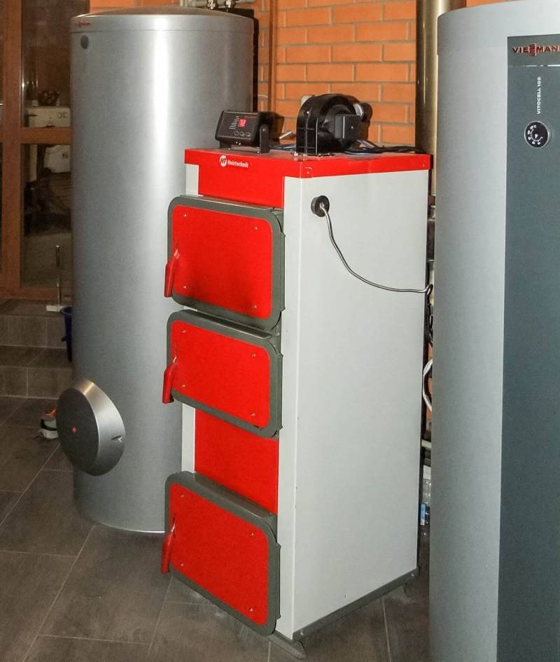 Photo 3. Chaudière à combustible solide à circuit unique. Il est relié au système de chauffage, à travers lequel circule le liquide de refroidissement.