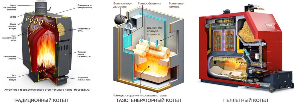 Sur la photo - la chaudière et les types de combustibles les plus populaires