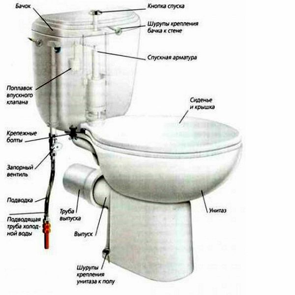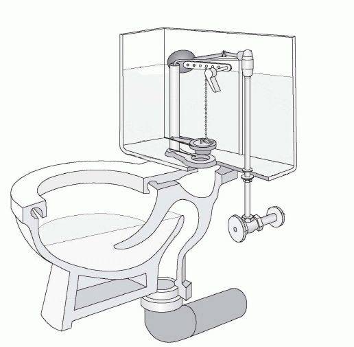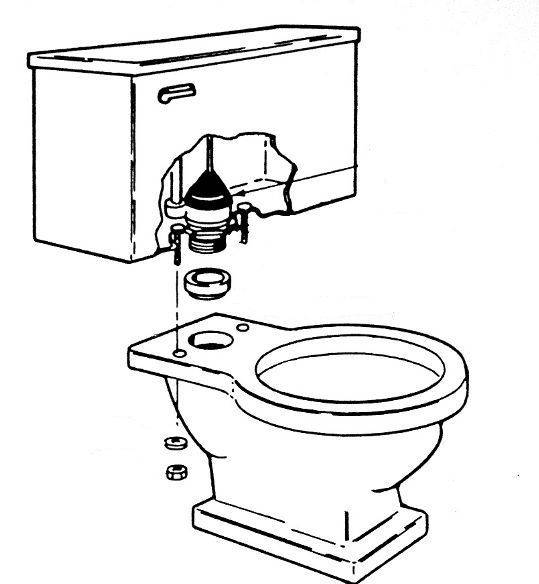 Le schéma de fixation du réservoir aux toilettes