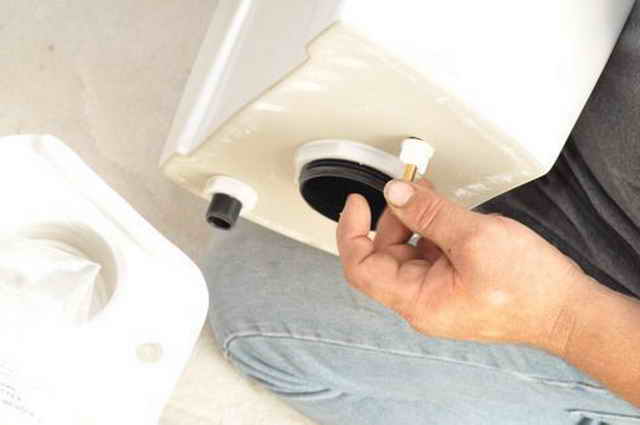 Des joints en forme de cône et des rondelles en plastique sont placés sur les fixations du réservoir de toilette, qui doivent être insérées dans les trous. Au verso, les composants sont également mis en place et serrés avec un écrou-raccord. Il est difficile de le faire manuellement, donc pour une fixation sûre, vous devez utiliser une clé ou une pince. Cependant, un serrage excessif peut raccourcir la durée de vie des joints, entraînant des fuites. Il est également possible que des fissures apparaissent sur le revêtement en céramique du réservoir.