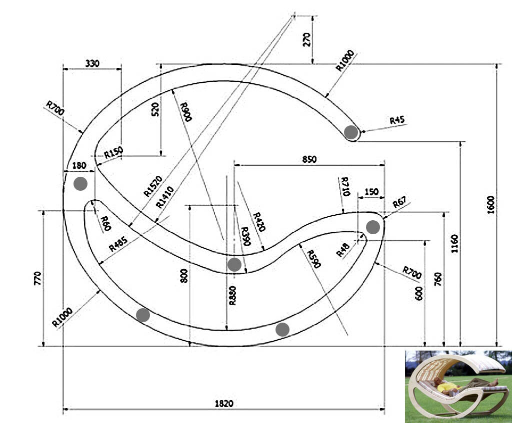 Chaise à bascule en bois à faire soi-même: idées de photos, dessins + instructions étape par étapeDécoupe de contreplaqué. Détail de la chaise