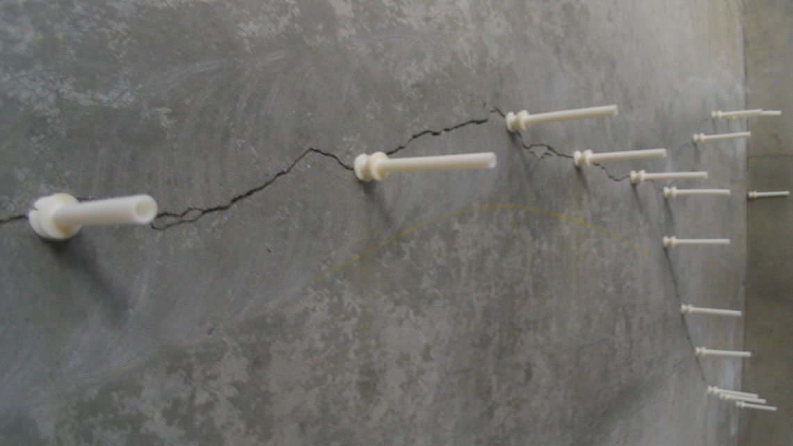 En raison de la croissance des contraintes internes causées par les effets négatifs décrits ci-dessus, des fissures se forment dans la structure en béton, ce qui peut réduire considérablement la capacité portante de la structure et raccourcir sa durée de vie.
