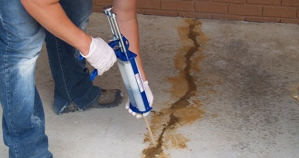 Vous pouvez remplir efficacement presque toutes les fissures d'une surface en béton à l'aide d'un scellant. Un tel matériau élastique scellera hermétiquement le défaut, car il est capable d'augmenter de volume.L'étape préparatoire implique un nettoyage en profondeur de la surface du problème à partir de petites et grandes fractions. Humidifiez le support avant d'appliquer le mastic. De plus, préparez de petites rainures pour améliorer l'adhérence de la composition au matériau.