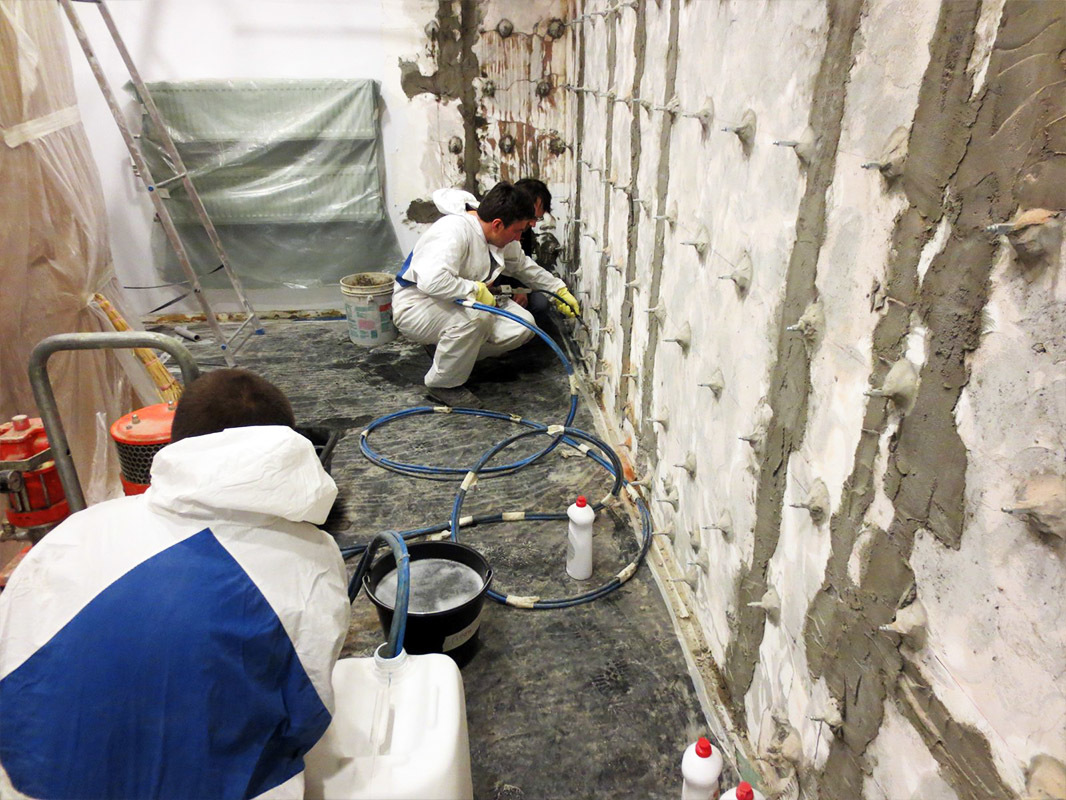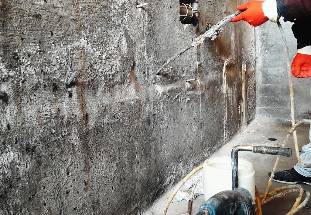 Cette méthode est utilisée pour effectuer des travaux de réparation dans les vasques des piscines extérieures, pour restaurer des fondations monolithiques et restaurer l'intégrité des murs extérieurs dans les locaux industriels.