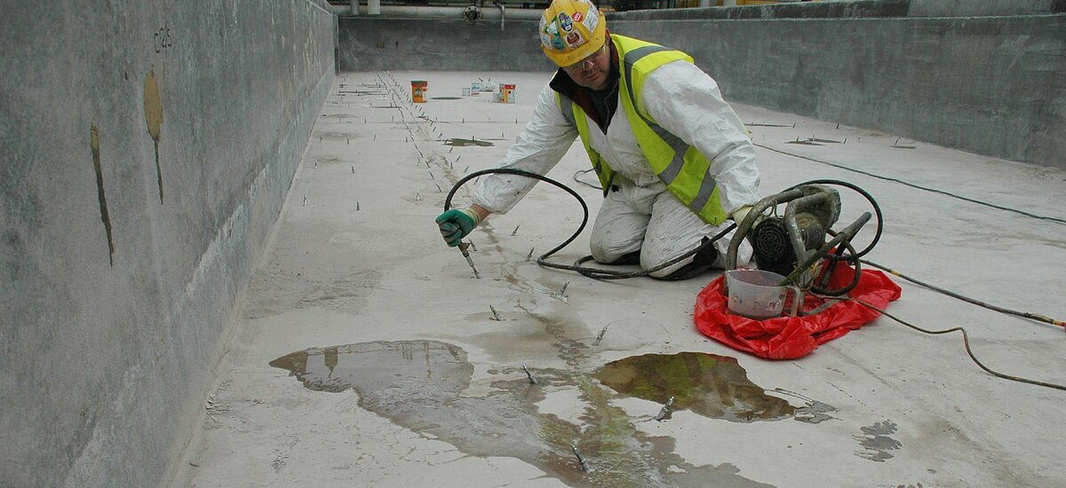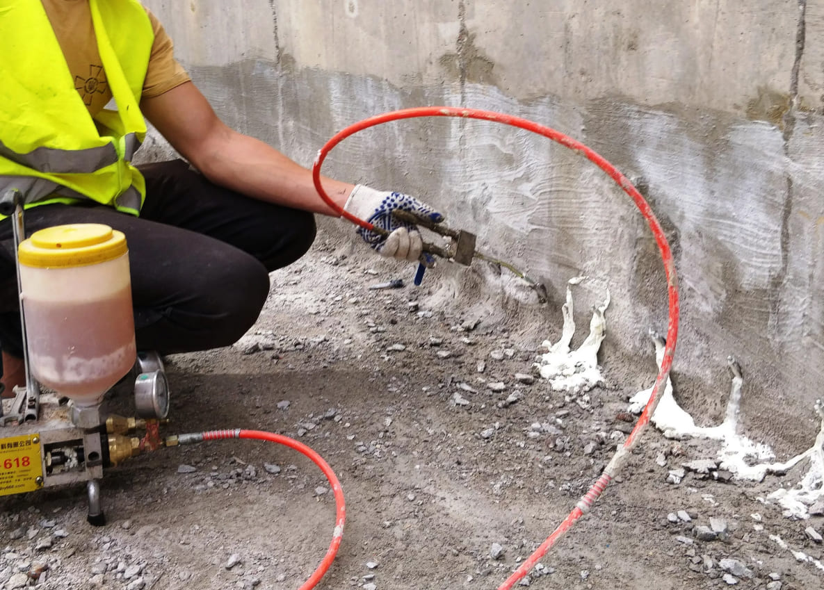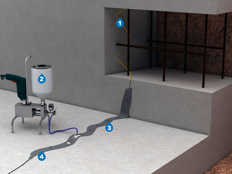 - Colmatage des fissures, y compris des aquifères dans le béton.
