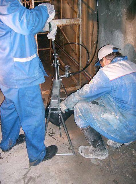 L'injection est basée sur l'apport de composés spéciaux sous pression dans les ouvertures apparues, qui remplissent complètement les vides formés et durcissent. L'injection du mélange de remplissage est réalisée par des pompes pneumatiques, électriques ou mécaniques. Leurs capacités de conception sont conçues pour un dosage clair des composants d'injection, en maintenant le niveau de pression requis. Le matériau d'injection est un matériau polymère-ciment, une résine époxy. Pour mener à bien une telle procédure, des trous sont percés dans le béton le long de la fissure des deux côtés et des packers sont installés à travers lesquels la composition d'injection est fournie (Fig. 1).