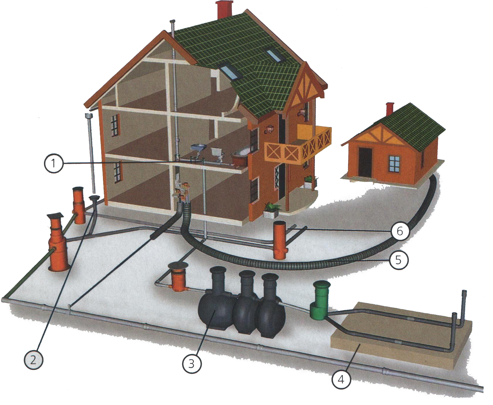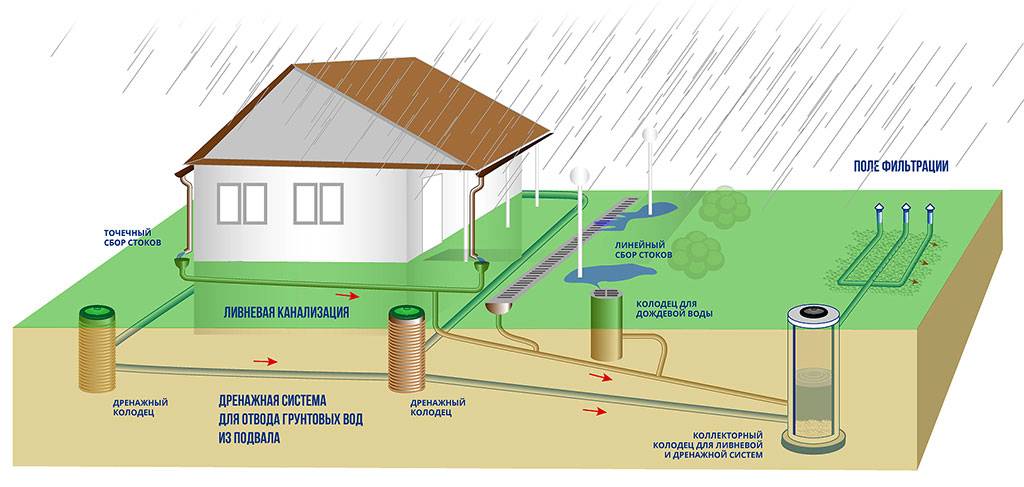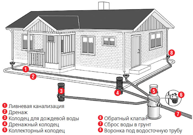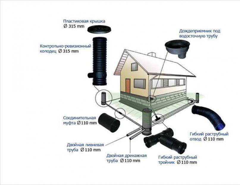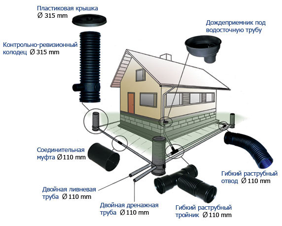 Les égouts pluviaux d'une maison privée ne contiennent pas toujours tous ces appareils, mais un système de n'importe quelle configuration et complexité peut en être construit.