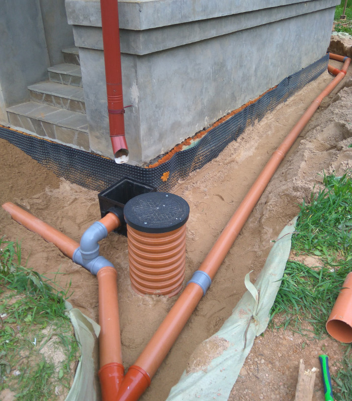 - chaque pièce du système de drainage est vérifiée - pour cela, l'eau est évacuée du tuyau sous pression, les joints doivent être étanches (recouverts de mastic bitumineux, par exemple);
